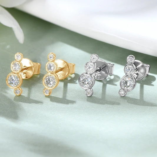 2024 Fashion D Color Bezel Moissanite Stud Earrings Climber 100% 925 Silver for Women 4 Stone Piercing Ear Jewelry GRA Certified