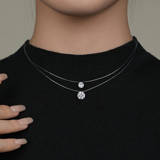 925 Silver 8mm 2ct Moissanite Pendant Necklace for Women Jewelry Adjustable Invisible Fish Line Chain Collar 1ct 0.5ct Diamond
