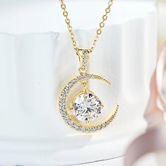 8mm 2.0CT Moissanite Sun Crescent Pendant Necklaces For Women 925 Silver Adjustable Chain Charm GRA Certified Jewelry Gift