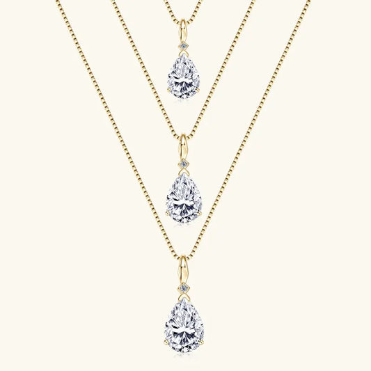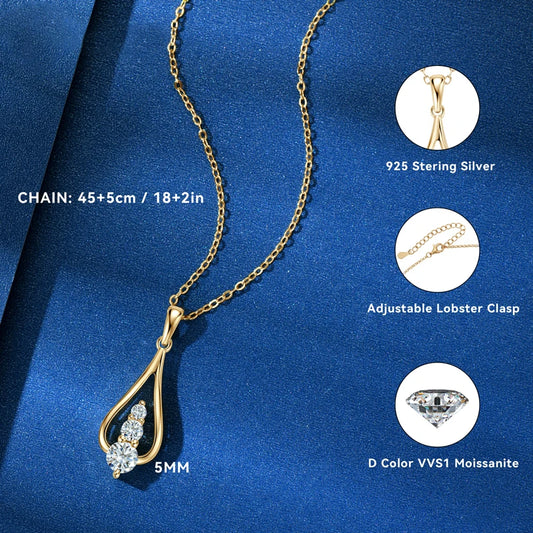 2024 Waterdrop Pendant Necklace 18k Gold Plated 3 Stones Moissanite Clavicle Real 925 Silver Chain for Women Jewelry Gifts