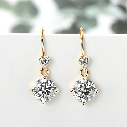 New D1.13CT Moissanite Drop Earrings Silver 925 Gold Plated Wedding Hook Earrings for Women Jewelry with GRA Certificate