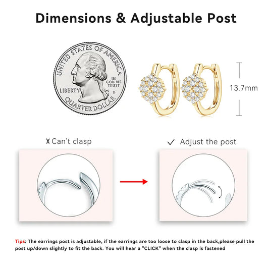 Original D0.50CT Moissanite Drop Piercing Earrings 925 Sterling Silver for Women Split Half Hoop Huggie Earrings Cuffs Jewelry