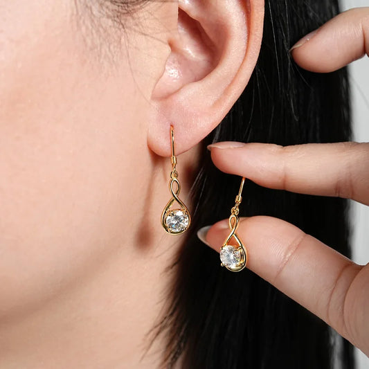 925 Sterling Silver 6.5mm 1.0 Carat Moissanite Drop Dangle Earrings Infinity Hook Wedding Jewelry Women's Christmas Gift