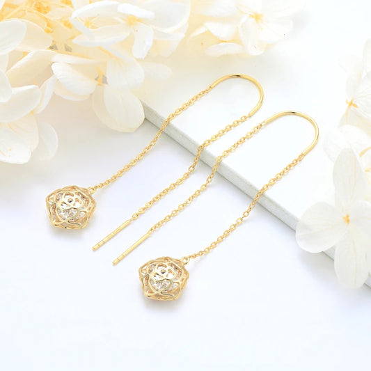Elegant Drop Ear Line Long Hanging Tassel Earrings for Women 925 Sterling Silver Rose Flower Certified Moissanite Jewelry