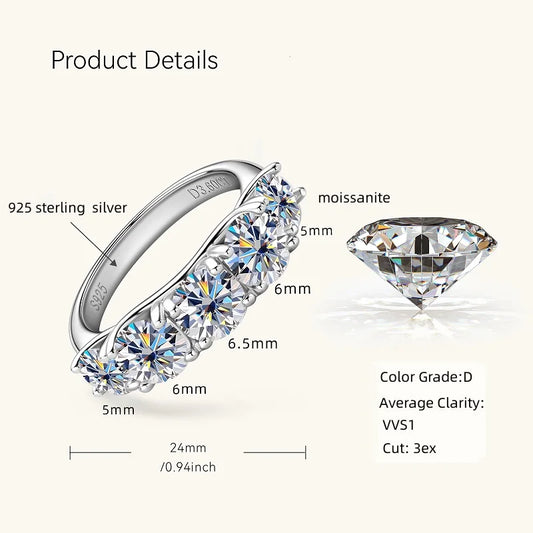 3.60CTW All Moissanite Diamond Ring Sparking D Color 5 Stones Wedding Engagement Band For Women 925 Silver Promise Jewelry