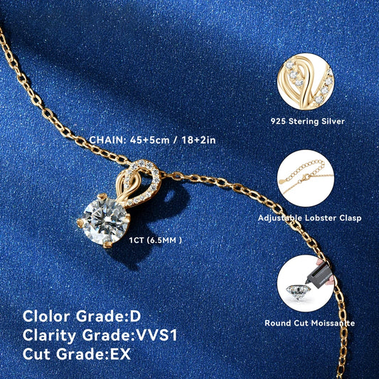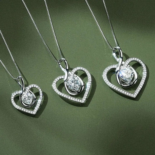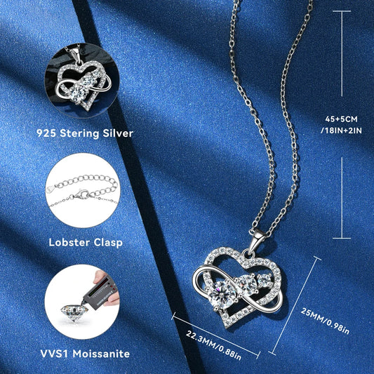 2024 Original 925 Silver Infinity Moissanite Heart Pendant Necklace D1.60CT Round Cut Lab Diamond Neck lace Women's Jewelry Gift