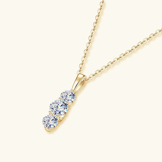 1.1ctw. D Moissanite Pendant Necklace for Women 925 Silver Three-Stone Vertical Bar Pendants Adjustable Chain Jewelry Gift