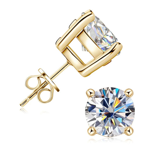 100% 925 Sterling Silver Gold Stud Earrings 6.5mm D Color Moissanite 4 Claw Earrings Classic Jewelry for Women Girl Gift
