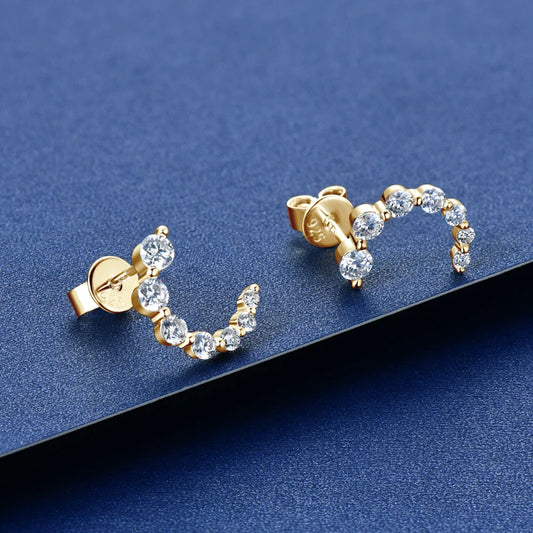 100% 925 Silver C-Shape Tapering Earrings D Color Moissanite Piercing Stud Earrings for Women Jewelry with GRA Certificate