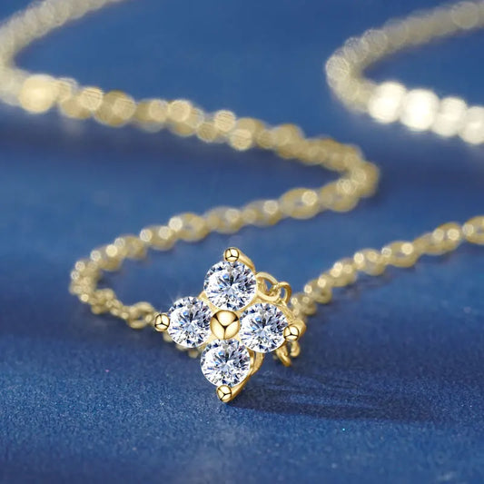 100% Real 10K Gold Clover Flower 2.5mm D Moissanite Pendant Necklace Adjustable Chain for Women Lucky Charm Jewelry Gifts