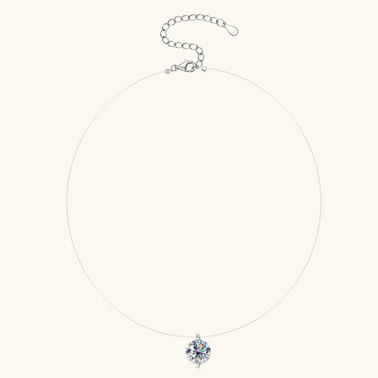 2ct 1ct 0.5ct D Moissanite Pendant Necklaces for Women 925 Silver Adjustable Invisible Fish Line Chain Choker Gift 6.5-8mm
