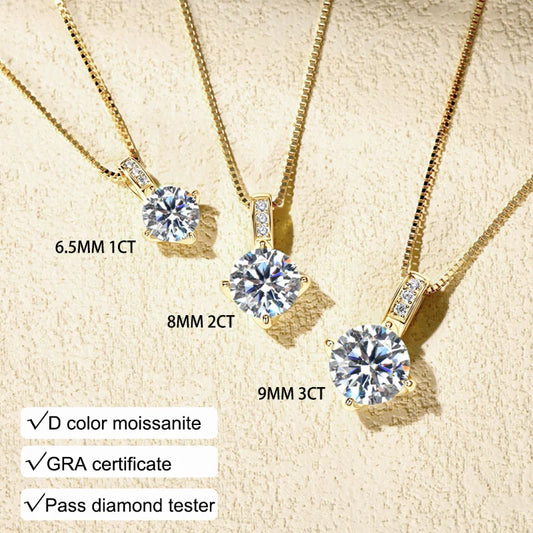 2025 New 4mm&2mm D Color Moissanite Pendant Necklace Plated 18K Gold 925 Silver Chain Jewelry GRA Certified for Women Girl Gifts