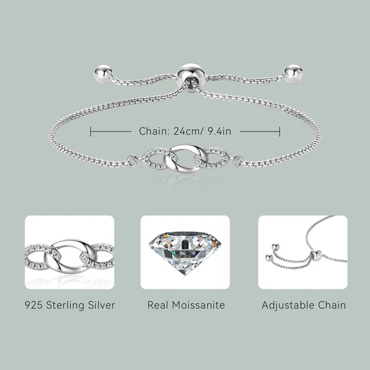 2025 1CT 6.5mm Infinity Moissanite Bracelet 925 Silver Adjustable Chain Evil Eye Bracelets for Women Hand Jewelry Gift GRA