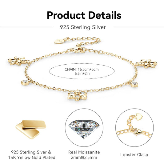 2025 New 925 Silver Flower Clover Bracelet Moissanite 3mm for Women 18k Gold Plated Fine Jewelry GRA Certified Lab Diamond