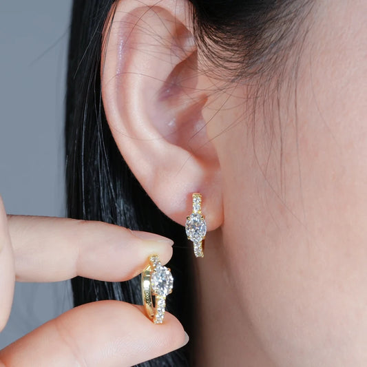 Hoop Huggie Earrings 100% 925 Sterling Silver 1.0ct Oval Cut D Color Moissanite Earrings for Women 2024 New Jewelry Gift