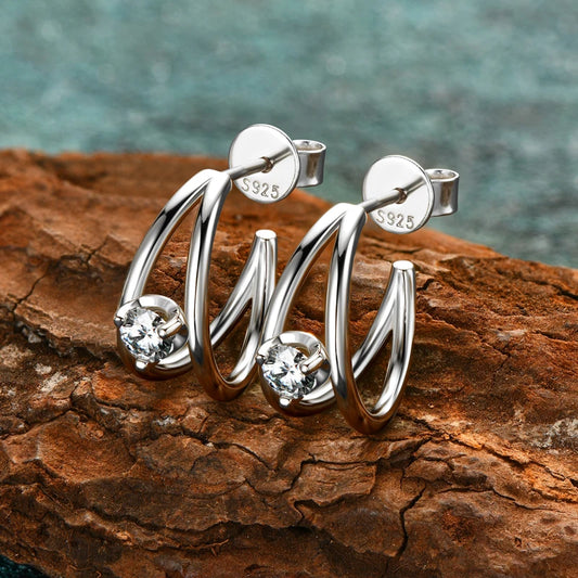 5mm Moissanite Open Hoops U Shape 3 Stone Earrings 925 Sterling Silver Piercing Ear Earring Gift for Women Jewelry Wedding