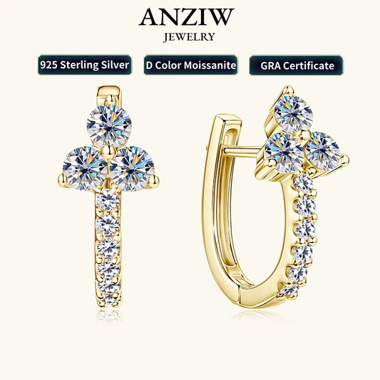 2025 New 3mm Round Moissanite Three Stone Hoop Earrings Real 925 Sterling Silver Earrings Jewelry Valentine's Day Gift for Women