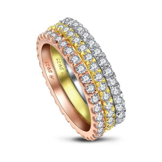 Luxury 925 Sterling Silver Band Rings Women Engagement Simulated Diamond Wedding Silver Bridal Full Eternity Rings