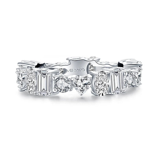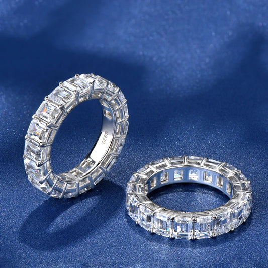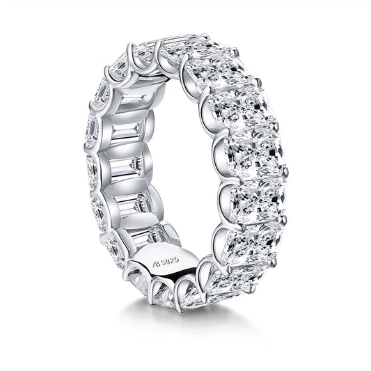925 Sterling Silver Full Eternity Ring 6x4mm Radiant Cut 5A Zircon Band for Women Simulated Diamond Luxury Party Jewelry