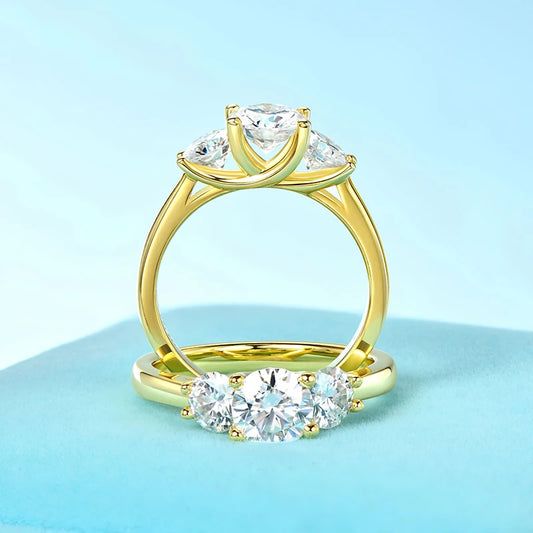 0.5-3.0CT Moissanite Solitaire Ring Silver 925 14K Gold Plated Wedding Engagement Band For Women Jewelry with Certificate