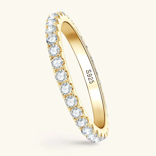 Classic 925 Sterling Silver Full Eternity Ring 2mm D Moissanite Rings Stackable Finger Bands for Women 18k Gold Plated Jewelry