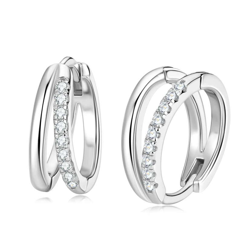 The Real D Color Moissanite Double Hoop Earrings are the perfect choice for women who appreciate a sleek, contemporary design with subtle sparkle. Featuring a dual-hoop silhouette in polished sterling silver, these earrings deliver a minimalist yet luxurious look that pairs beautifully with any outfit—whether for a wedding, engagement, birthday, or daily wear.