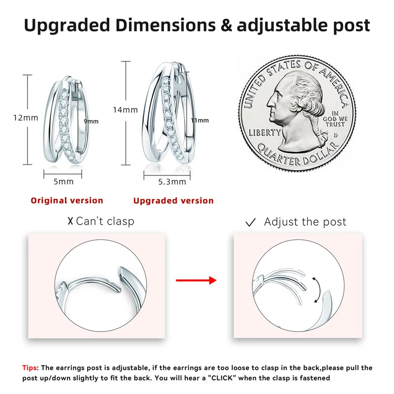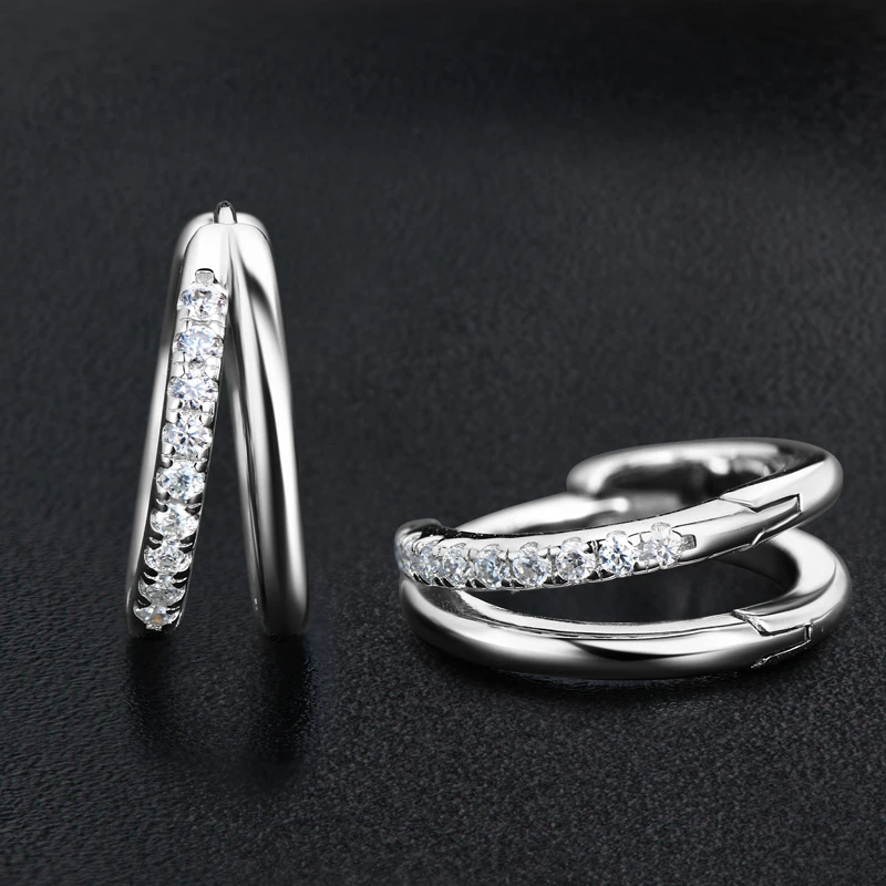 Real D Color Moissanite Double Hoop Earrings for Women 925 Sterling Silver Round 1mm Diamond Minimalist Fashion Jewelry
